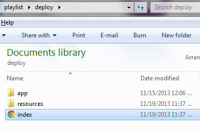 Copy the contents of the Playlist template download onto a publicly accessible website or web server. This can be a web server that you or your organization maintains, or it can be a folder on a shared or hosted web server that you use for your website. In an enterprise situation, you can have a system administrator load the files onto a server. The location of the template's index.html file on your website or web server defines the URL that's used to access your playlist.