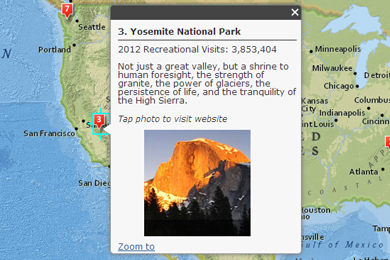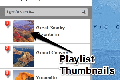 To create a playlist, you'll create a web map containing your points, install the template on a publicly accessible website or web server, and configure the template to point to the web map you created.