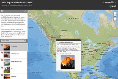 The Story Map Playlist℠ app template presents a set of point features, usually from a CSV file that has been uploaded into an ArcGIS Online web map, as an organized interactive list. Your audience can explore the points from the map or click a corresponding item in a list.